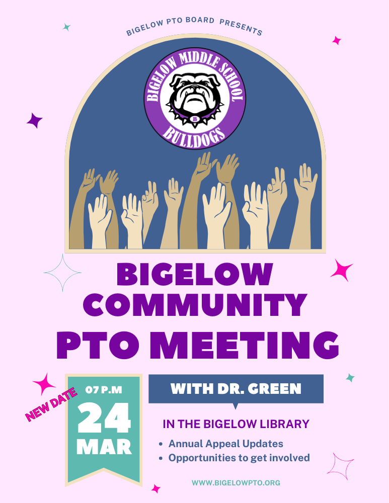 Thursday, March 5: 8th Grade Parents’ Meeting with Principal Turner at Bigelow, 8:30am