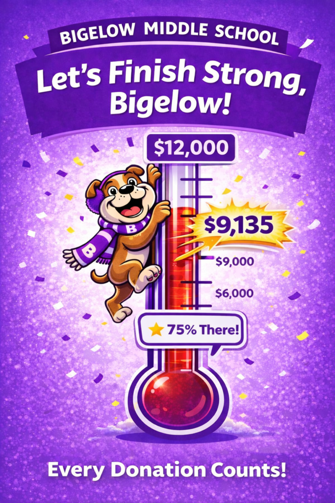 Our goal is to raise $12,000 to support Bigelow events throughout the year. We’re almost there! Your generosity allows us to support students, teachers, and the programs that make Bigelow Middle School so special.