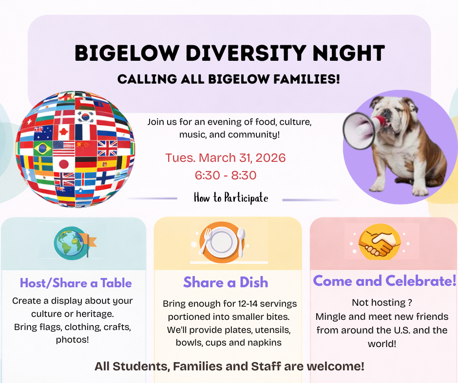 Please join our Bigelow PTO Board on Tuesday, March 24 at 7pm for a Community Meeting in the Bigelow Library.