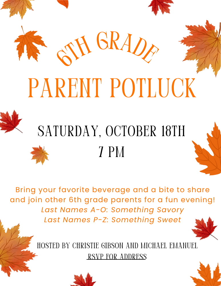 Bigelow 6th Grade Parents and Guardians, please RSVP HERE and we will send the event address to the email you provide.